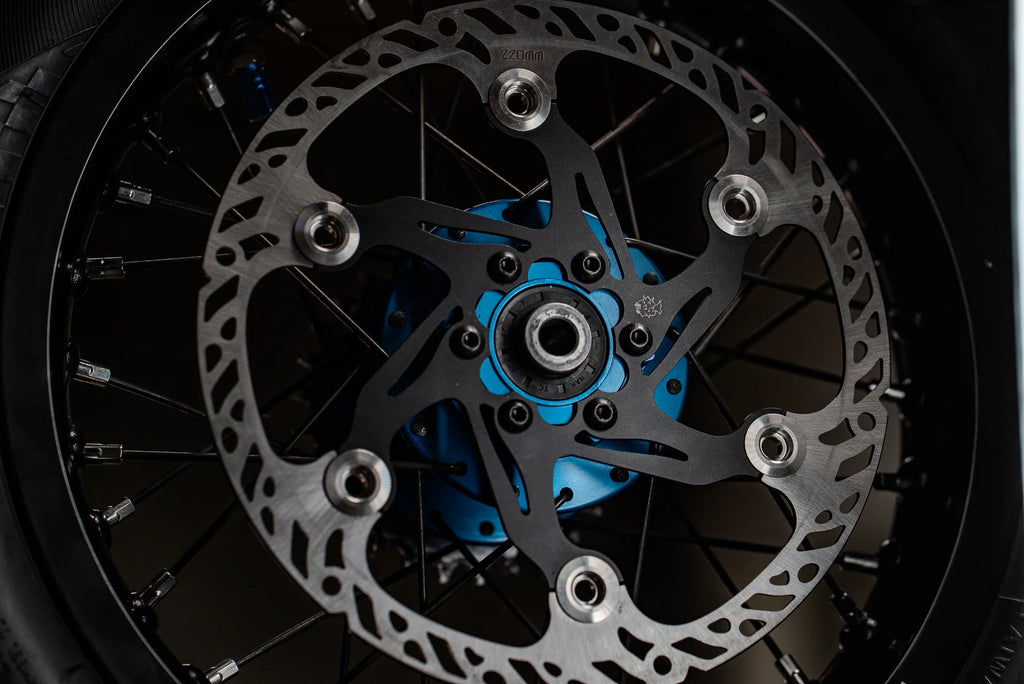 Rear rotors are M6 bolt mounting for Surron OEM 54mm pattern